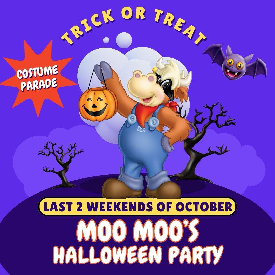 ✨ Dress in your favorite Halloween costume & join Moo Moo and friends for a Trick-Or-Treat Costume Parade at 11 AM, 1 PM & 3 PM.